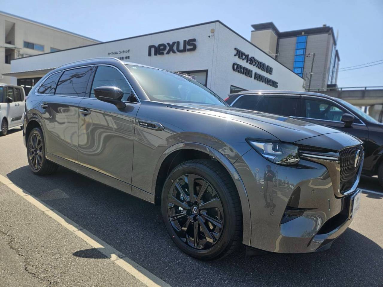 岡山県岡山市nexus株式会社です。 岡山市からのお客様です。今回はCX-80にコーティング施工です。コーティング剤はダイヤモンドハイブリッド2Layerとオプションでホイールコーティングと全面ガラス撥水コーティングを施工させていただきました。Diamond Coatは最大被膜硬度9Hのコーティング被膜を形成します。一度施工すると溶剤で剥がすことは出来ない程、丈夫な被膜を形成し、Diamond Coat施工後更にセラミック質のトップコートコーティングを施工する事によりガラスコーティングにはないボディの滑らかさと硬度、光沢が生まれます。セラミックコーティングの品質を体感して頂けます。 充実したカーライフをお楽しみください。この度は誠にありがとうございました。