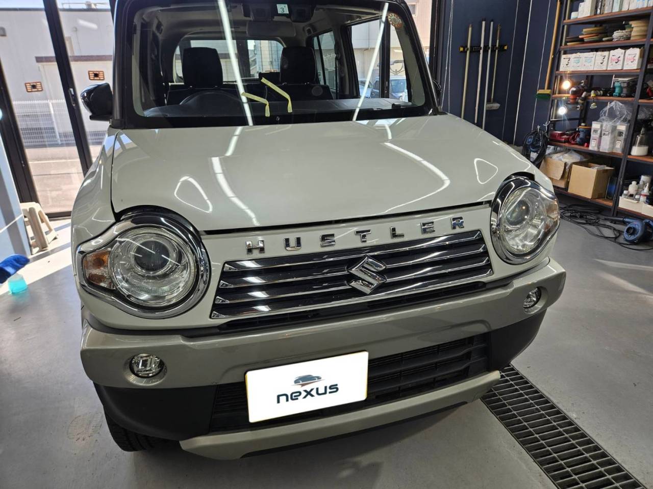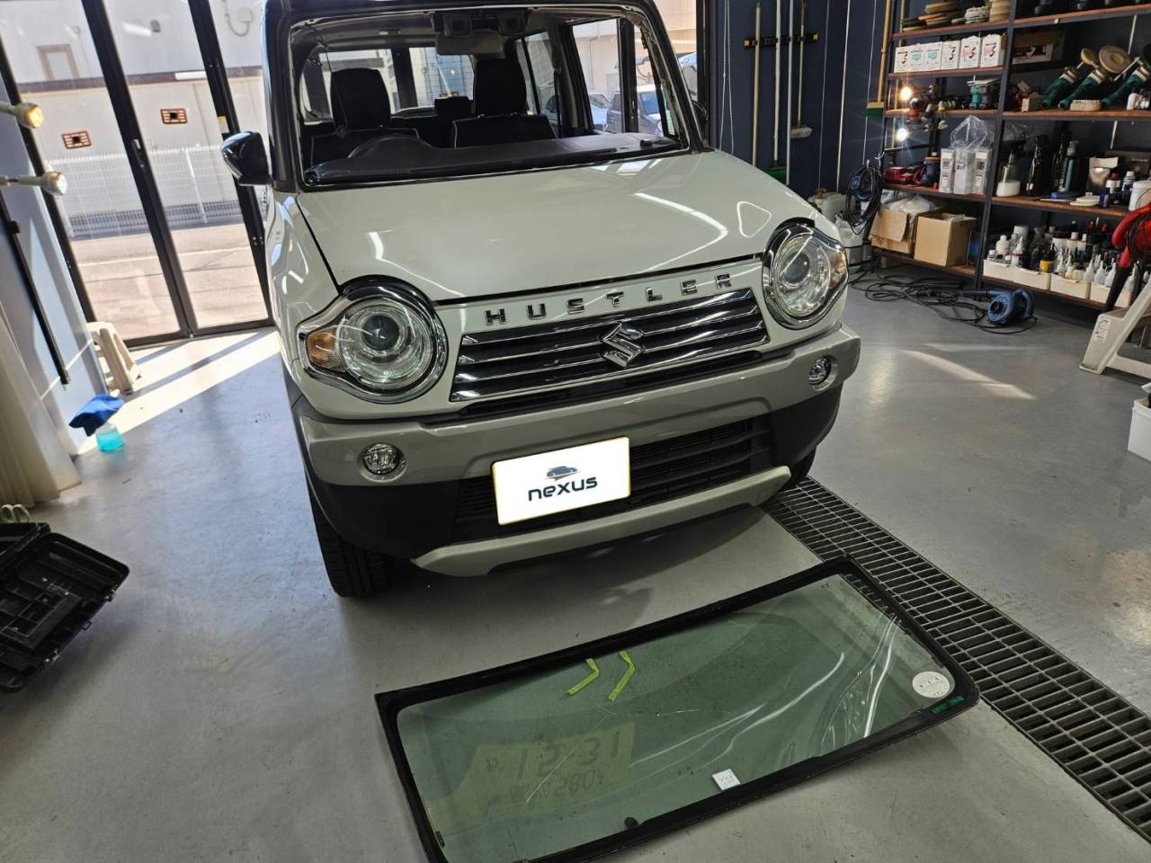 岡山県岡山市nexus株式会社です。 岡山市からのお客様です。今回はハスラーのフロントガラス交換です。今回交換させて頂いたガラスは純正フロントガラスです。この度は数あるお店から当社を選んで頂きご来店ありがとうございました。