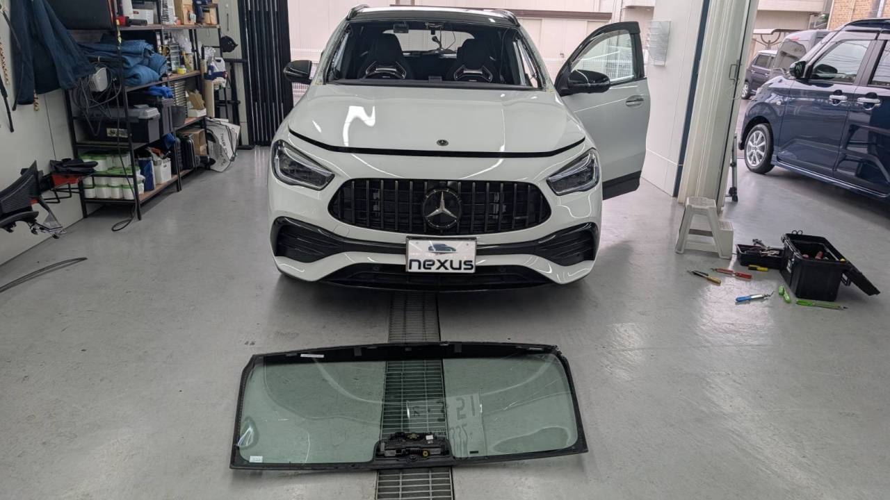 岡山県岡山市nexus株式会社です。 倉敷市からのお客様です。今回はGLAのフロントガラス交換です。今回交換させて頂いたガラスは純正フロントガラスです。この度は数あるお店から当社を選んで頂きご来店ありがとうございました。