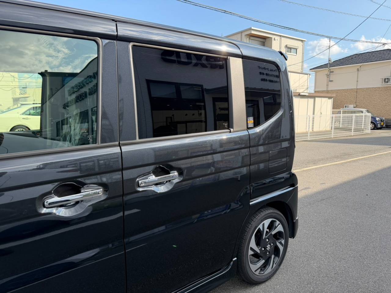岡山県岡山市nexus株式会社です。 玉野市からのお客様です。今回はスペーシアのリアフィルムのフィルム施工です。フィルムはウィンコスプレミアムで透過率5%のフィルムを施工させていただきました。ニーズに合ったものを施工させて頂きます。 ご相談も承りますので、お気軽にお問合せ・ご来店ください。ご来店誠にありがとうございました。
