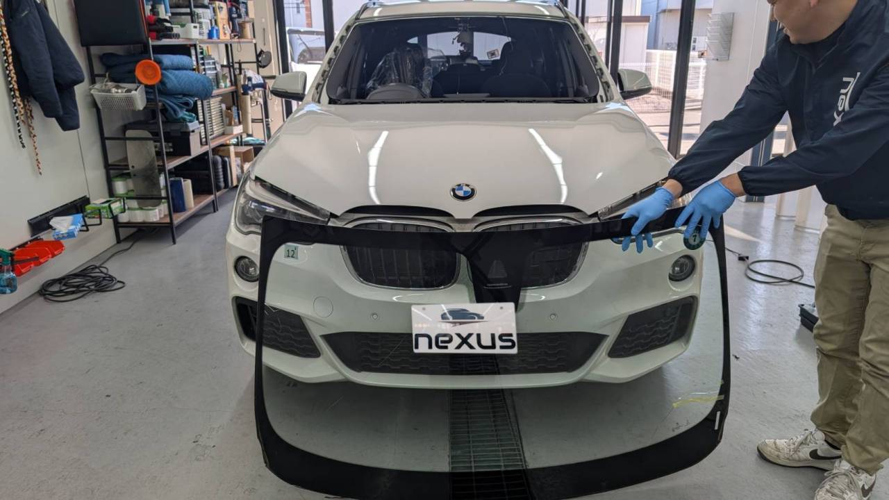 美作市のお客様にフロントガラス交換 BMW X1【nexus株式会社】