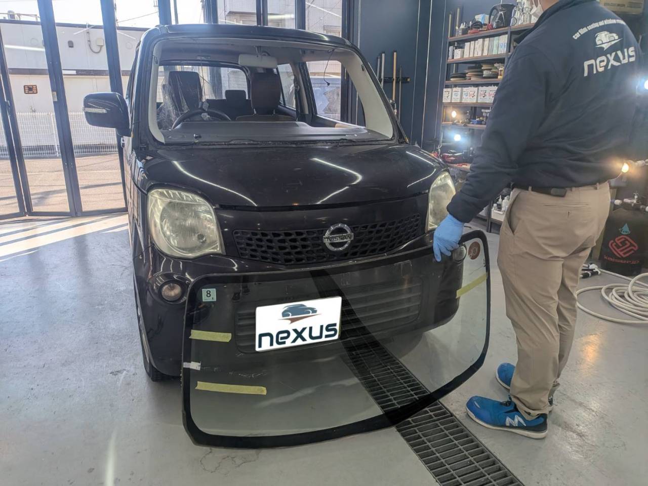 勝田郡勝央町のお客様にフロントガラス交換 モコ【nexus株式会社】