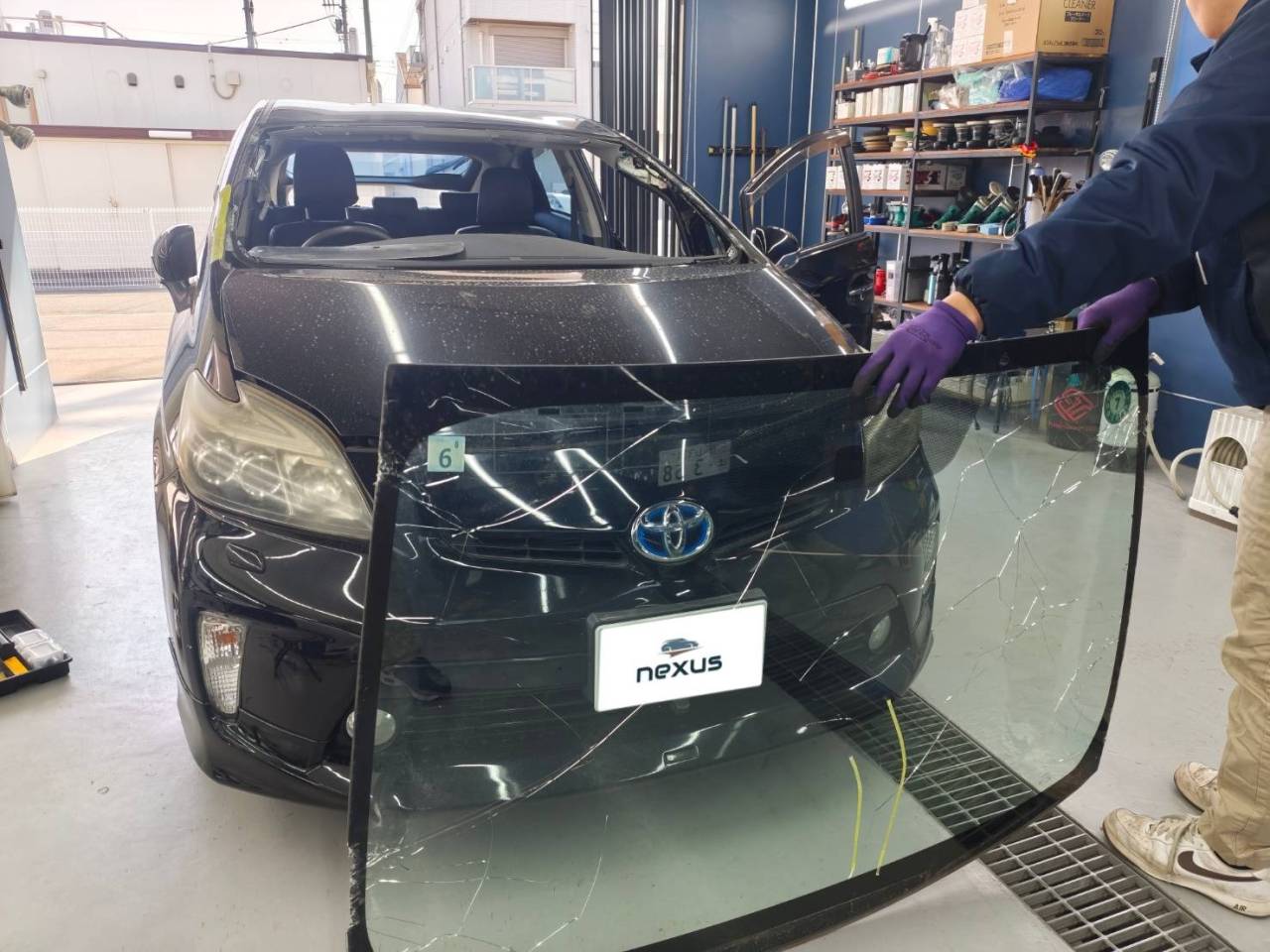 岡山市のお客様にフロントガラス交換 プリウス【nexus株式会社】
