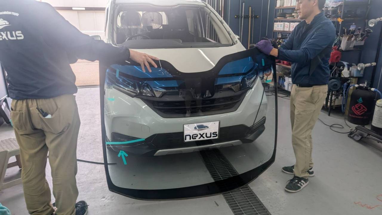 岡山市のお客様にフロントガラス交換 フリード【nexus株式会社】