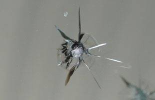 星形、放射線状にヒビが伸びている。